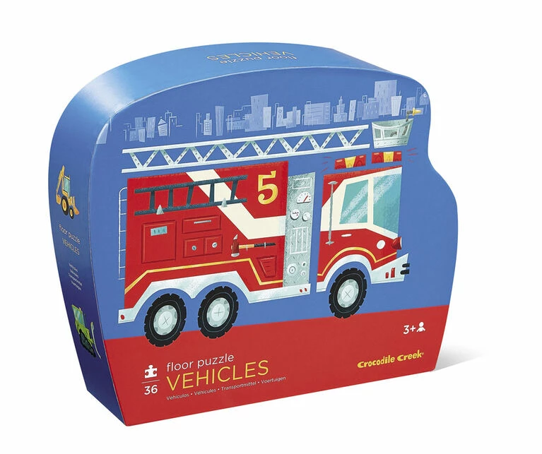 Crocodile Creek’s Vehicles 36 piece floor jigsaw puzzle will delight all ages. The 20″ x 27″ floor puzzle is not only significant in size but also has beautiful, colorful and complex illustrations that will inspire boys who like all kinds of different vehicles. All Crocodile Creek’s puzzles are printed with soy-based ink on recycled cardboard. Uniquely shaped storage box is study and will keep all the pieces together when the puzzle is not in use.
