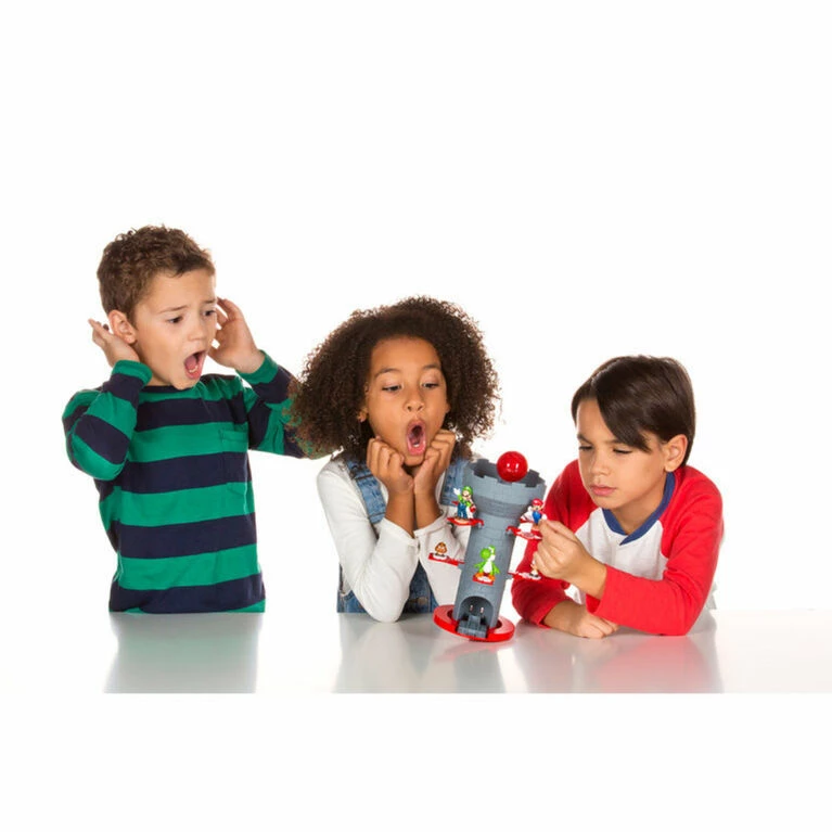 High quality games from Epoch and iconic Super Mario Action Figures come together in the newest line of tabletop action games from Epoch Games. Blow Up! Shaky Tower includes easy-to-assemble Tower with 7 unique Super Mario Action Figures and die. Classic game play starts when one player rolls the die to determine how many characters to place on or take off from the Tower. Be careful, and don’t shake the Tower or Mario and his friends will fall! Epoch Games Link System allows Super Mario Action Figures from Blow Up! Shaky Tower to play across the range of games including Balancing Games, Piranha Plant Escape and more! Suitable for the whole family, including children ages 4 and older.
