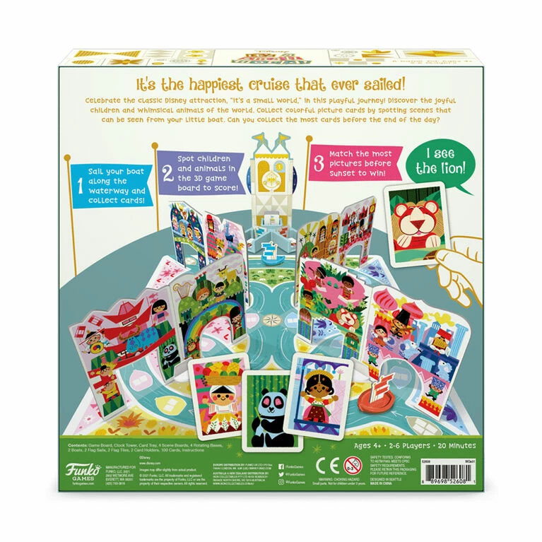 It’s the happiest cruise that ever sailed! Celebrate the classic Disney Parks attraction, “it’s a small world,” in this playful journey! Discover the joyful children and whimsical animals of the world. Collect colorful picture cards by spotting scenes that can be seen from your little boat. Can you collect the most cards before the end of the day?