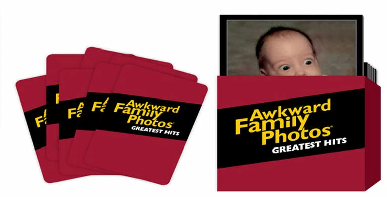 We all have them…awkward family photos. They make us cringe and laugh and wonder, “What were we thinking?” Well, inside this box are 100 of the most hilarious, classic and cringeworthy photos carefully curated from the archives of AwkwardFamilyPhotos website. And you’ll get to choose from 330 of the most memorable movie lines ever uttered on the big screen to caption these unforgettable images. With simple gameplay and no movie knowledge required, get ready for an award-winning game night. Behold Awkward Family Photos Greatest Hits!