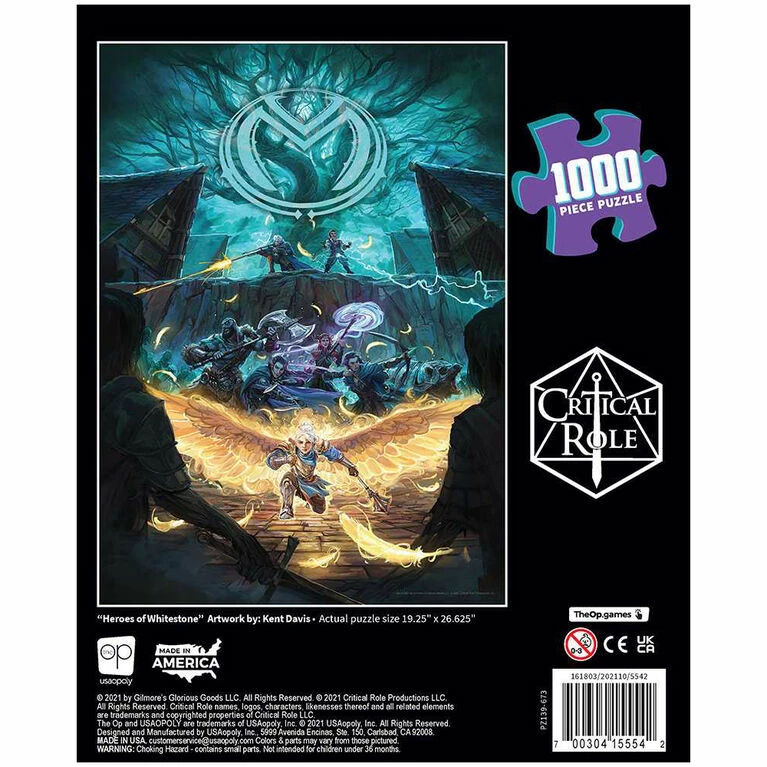 Come to the town square and join Vox Machina – the “Heroes of Whitestone” – as they battle undead foes beneath the Sun Tree in this radiant 19 x 27″ 1000 piece jigsaw puzzle featuring art by Kent Davis.
