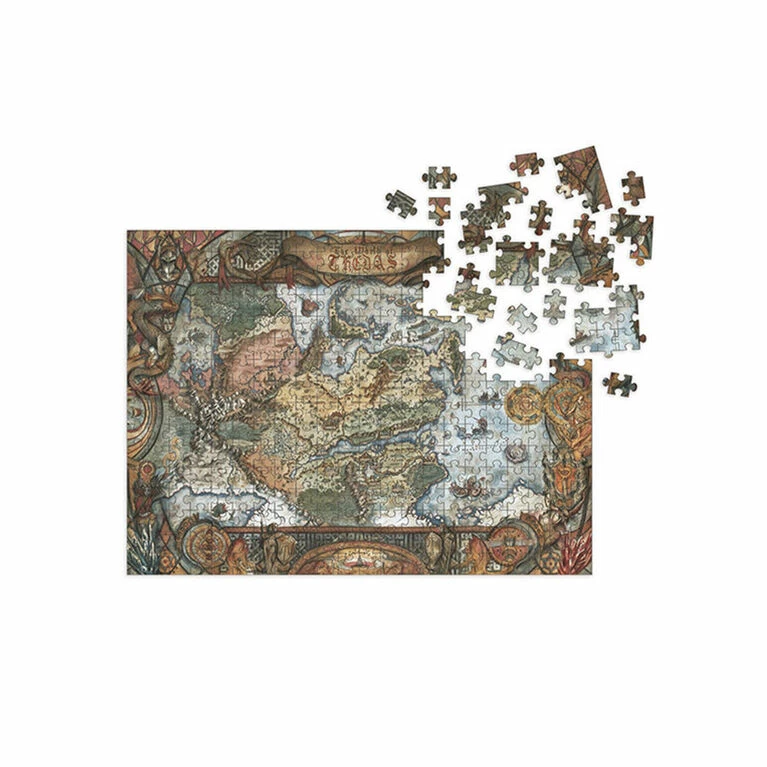 The world of Thedas is a vast mystical world in the Dragon Age games; full of diverse races, nations, and religions. Explore every inch of this mysterious and magical world piece by piece in this 1000-piece puzzle. It features the beautiful artwork of acclaimed artist and cartographer Francesca Baerald. 1,000 pieces, measuring 20” x 27”.