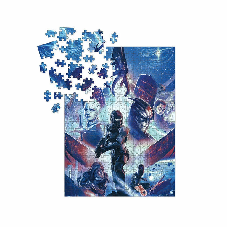 The first chapter of the acclaimed Mass Effect trilogy starts as a hunt to bring the rogue Spectre Saren to justice. We soon find heroes are needed to uncover the mystery of an ancient machine race that ruthlessly invades our galaxy every 50,000 years. This gorgeous puzzle showcases art of the first chapter of the groundbreaking trilogy. Puzzle measures 20” x 27”, 1,000 pieces.