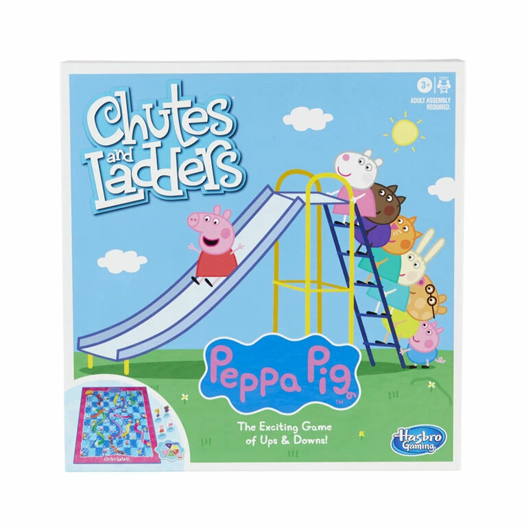 Slide into the fun with the Chutes and Ladders: Peppa Pig Edition board game! Kids can imagine spending time on the playground with Peppa Pig and friends as they climb and slide in this exciting game of ups and downs. It includes 4 adorable character movers so kids can choose to play as Gerald Giraffe, Suzy Sheep, Danny Dog, or Peppa Pig. They spin the spinner and move along the numbered squares on the gameboard, trying to reach the 100 square first. The ladders can help players get there faster but they need to watch out for the chutes that can sweep them further away from the win. No reading is required to play this board game and it can give preschoolers a chance to practice their numbers. It’s a fun indoor game, and makes a great birthday or holiday gift for kids ages 3 and up.