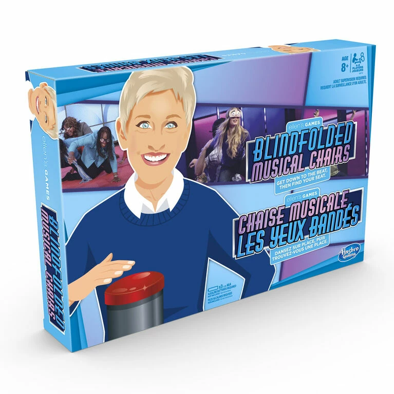 Love Ellen’s Games? This Blindfolded Musical Chairs game is a laugh-out-loud, active game inspired by the hilarious Musical Chairs game she plays on TV. One player is in charge of the music and setting up the disc-shaped seats. The other players put on blindfolds, and bust out their best dance moves when the music starts. When the host stops the music, players compete to find a seat. Anyone left without a seat is out. Repeat until 2 players are left. Then it’s a final head-to-head round to crown the winner of Blindfolded Musical Chairs!