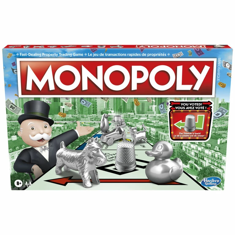Select a favorite Monopoly token, place it on Go and roll the dice to own it all! In classic Monopoly gameplay it’s all about buying, selling and trading properties to win. The more properties a player owns, the more rent they can charge. Maybe spring for Park Place? Or is St. James Place a steal? Make the call in this board game for adults and kids ages 8 and up. Chance or Community cards can be a game changer. Will it make a player richer — or send someone to Jail? The Monopoly game is a fun thing to do while staying at home. It’s a Family Game Night Favorite, a great indoor game for kids, and a fun homeschool activity. There can be only one winner in the Monopoly game. Will it be you?
