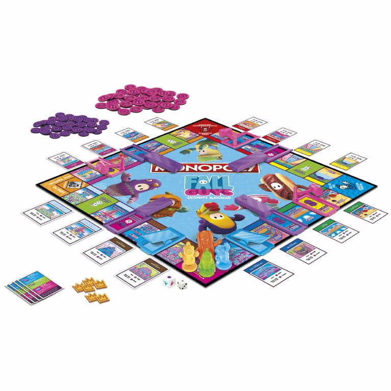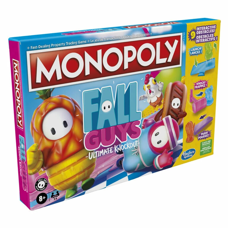 The Fall Guys mark, logo and characters are trademarks of Mediatonic Limited. 2022 Devolver Digital Inc. The Hasbro, Hasbro Gaming, Parker Brothers, and Monopoly names and logos, the distinctive design of the gameboard, the four corner squares, the Mr. Monopoly name and character, as well as each of the distinctive elements of the board and playing pieces are trademarks of Hasbro for its property trading game and game equipment.
