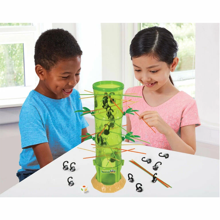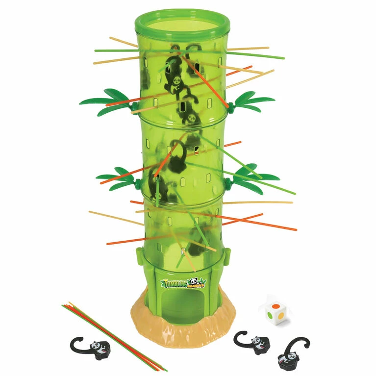 Don’t let the pandas fall! Who can avoid causing the pandas to tumble down from the bamboo pole?! Insert the colored sticks through the slots, drop all the pandas in from the top, and you’re ready to play! Players take turns pulling out the sticks, carefully picking those which may prevent the pandas from falling. Luckily their rounded arms cause the pandas to keep getting hooked as they fall down! For an extra challenge roll the dice to see which color of stick you need to pull. Whoever collects the fewest pandas wins! For 2-4 players. Recommended for ages 5 and over.