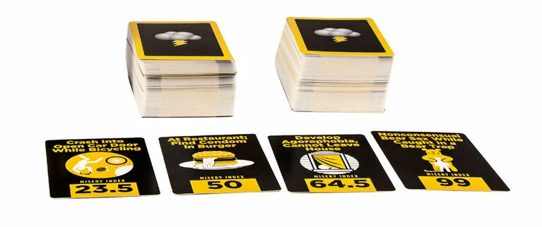 You’re going to read some really messed up stuff on these cards, and then rank them based on how bad they really are. Is a 3rd degree sunburn better or worse than seeing your father naked? Is it worse than dropping your phone in the toilet? Rank the card, and if our Misery Index agrees with you, you get to keep it. Correctly rank 10 cards to win!