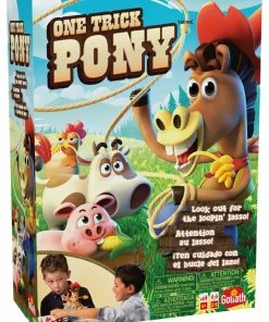 Howdy partner! This cowboy is keepin’ a watchful eye over his farm and isn’t afraid to hogtie any varmint who tries to mess with his herd. His lasso is fast, so step lively! Take turns trying to sneak his animals across the fence – but don’t get caught! His magical, spinning lasso will stop eventually to rope you in! Whoever rounds up the most animals at the end is the winner! Recommended for 2-5 players, ages 4 and up. Requires 3 AA batteries. Batteries not included. Trilingual edition.