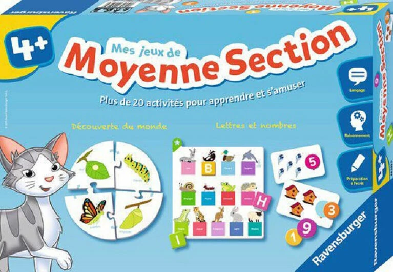 My medium section games bring together in a very complete and multi-theme box more than 20 different activities to discover the second year of kindergarten. All themes are addressed: learning letters, numbers, but also animals, shapes, colors, the human body, the plant world, the gestures of writing, and other surprises to discover! The three mascots, the cat, the bear and the bird, accompany the child throughout the game. It evolves through rich material, colorful and joyful illustrations, to acquire the fundamentals and progress while s’ amusing. For a game of 3 or 20 minutes, alone or with friends, the box lends itself to all the opportunities of play. Thanks to its clever system of miter boards and its big plate, the game is easy to install, ready to play and easy to put away.