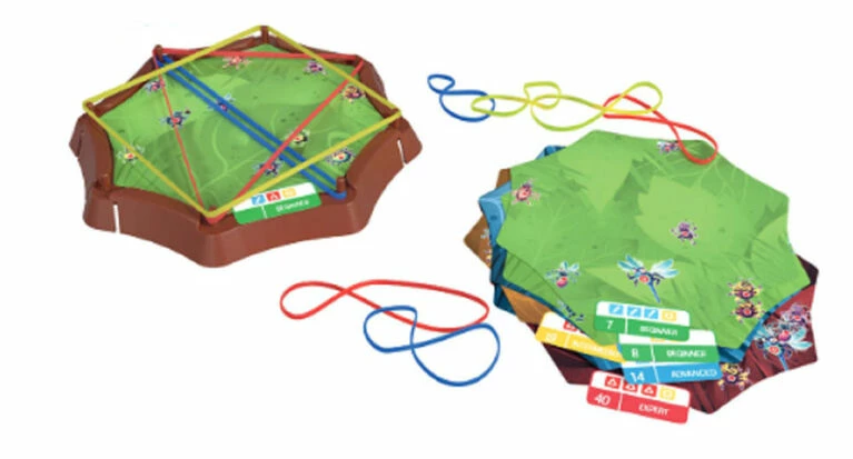 Crawl into the mind of a spider as you spin your web and catch prey in this clever logic game from ThinkFun. Select a challenge card and place it on the board, then gather the number of elastic bands shown. Stretch the elastic bands across the bugs to capture them. Once you’ve captured all of the bugs on the card – YOU WIN! Spider Web is a fun, challenging way to sharpen your spatial reasoning skills. Includes: 1 Game Board, 1 Transparency Card, 15 Elastic Bands, 40 Challenges, 4 Practice Challenges, Instructions and Solution Booklet