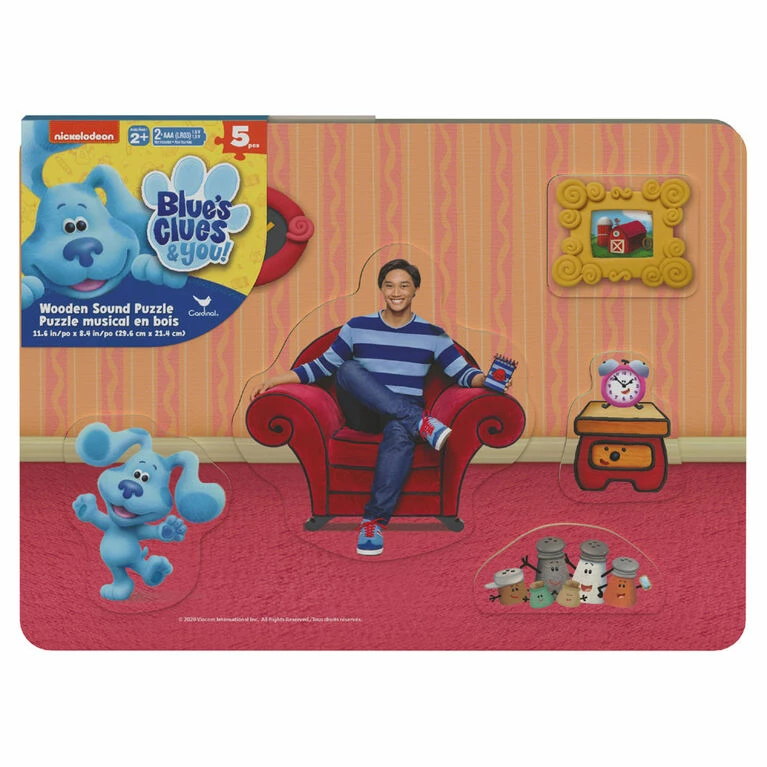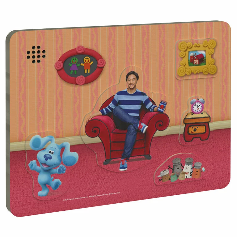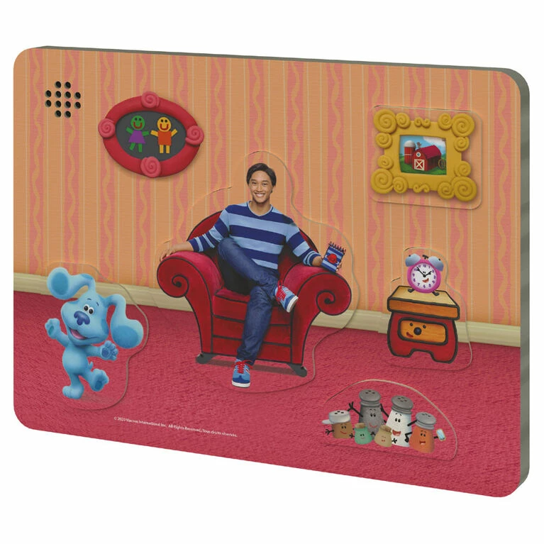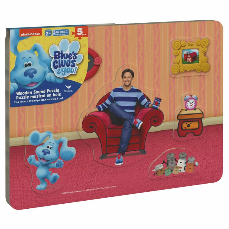 Big, chunky pieces fit securely into board spaces, triggering dialog from the beloved TV show. The Blue’s Clues Chunky Wood Sound Puzzle provides a fun, engaging way for children to learn shape and sound recognition. Best of all, they get to hear the characters they love over and over again. For ages 3 and up. Requires 2 x AAA batteries (not included).
