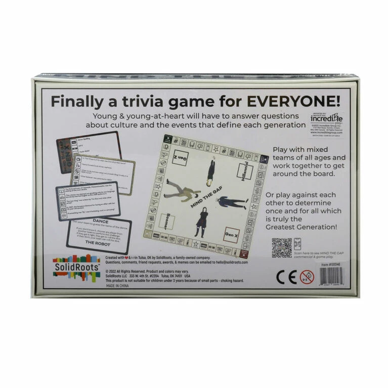 All ages must work together to answer pop culture trivia from the Boomer generation, Gen X, Millennial, and Gen Z to get around the board as quickly as possible. First team to go through each era is crowned the Greatest Generation.
